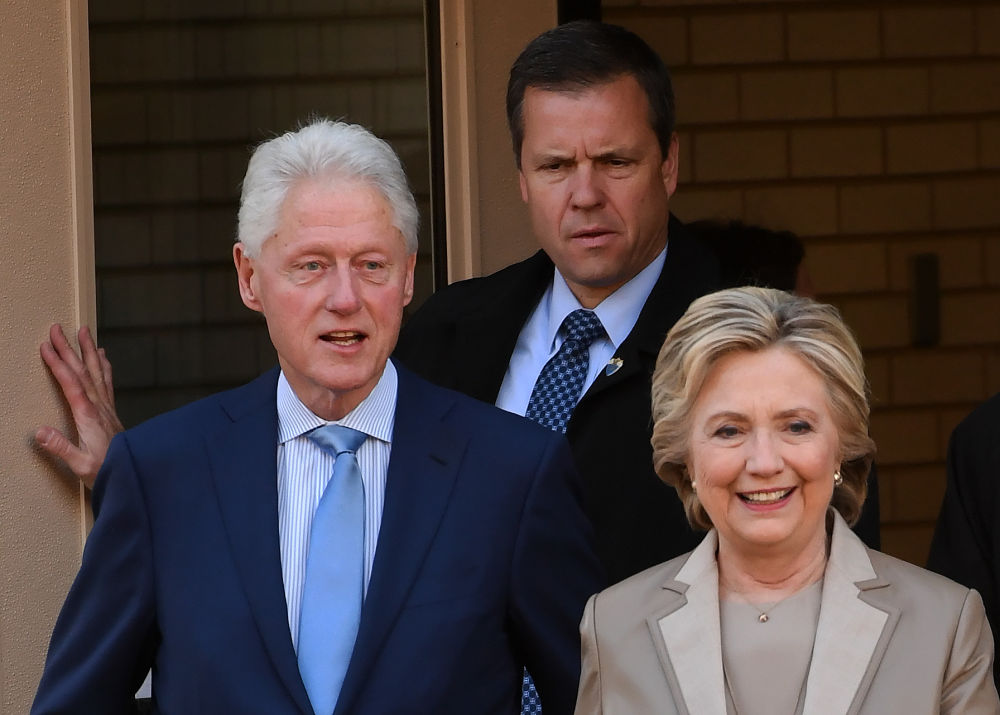 图为克林顿(前左)和希拉里(前右)2016年资料照片。新华社记者殷博古摄